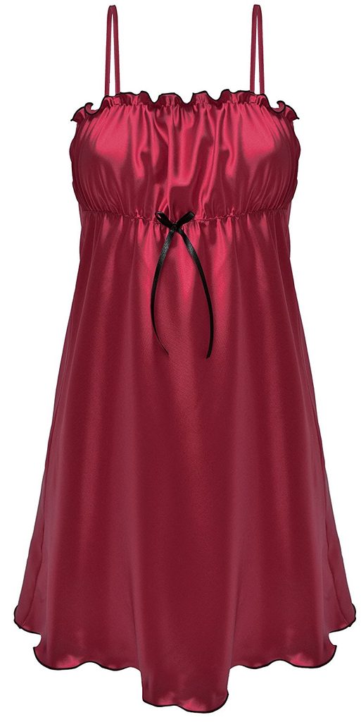 Dámská saténová košilka DKAREN Elwira ve vínové barvě. Luxusní saténová noční košilka se spaghetti ramínky. V dekoltu zdobená řasením a mašličkou na stáhnutí pod prsy. Sexy krátký střih. Dopřejte si perfektní pocit z luxusního materiálu, jakým satén bezesporu je.