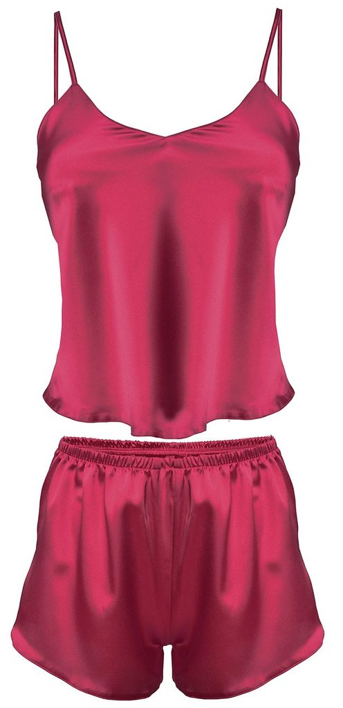 Dámská souprava DKAREN Karen ve vínové barvě. Souprava obsahuje top na špagetová ramínka a šortky francouzského střihu. Komplet je velmi příjemný na domácí nošení nebo na spaní. Vyrobeno z příjemného saténu