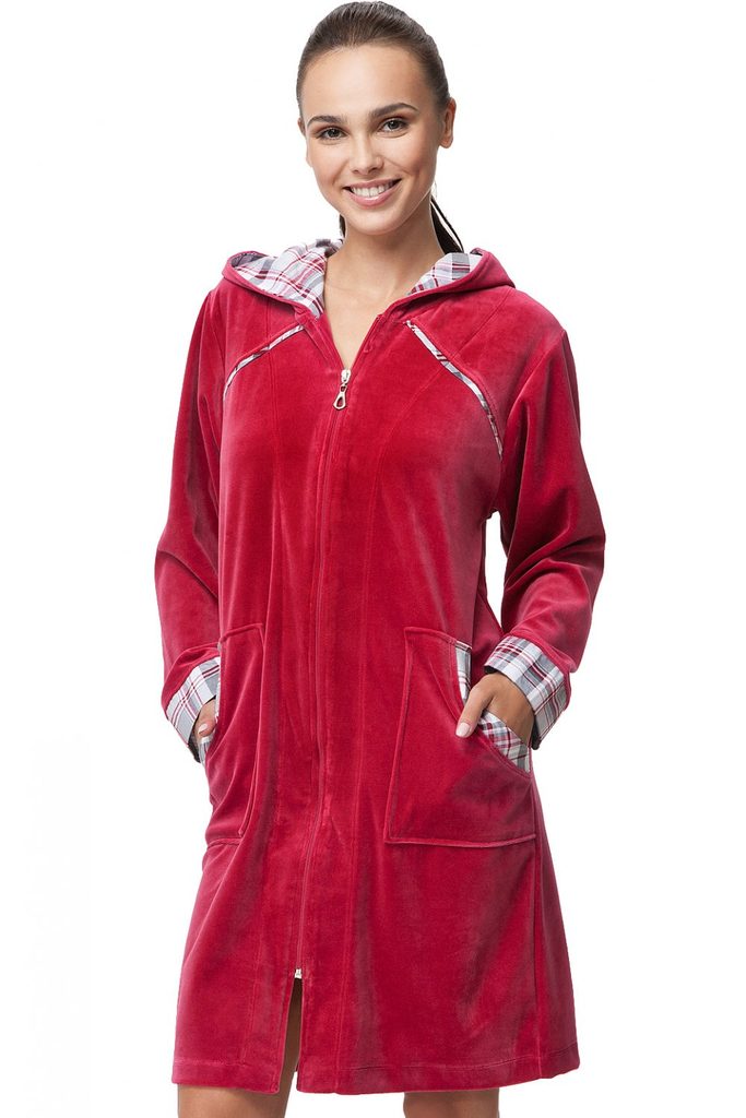 Dámský župan 289 Luna - vínová barva - materiál příjemný na dotek - s kapucí - pohodlný a komfortní střih se zapínáním na zip - délka nad kolena