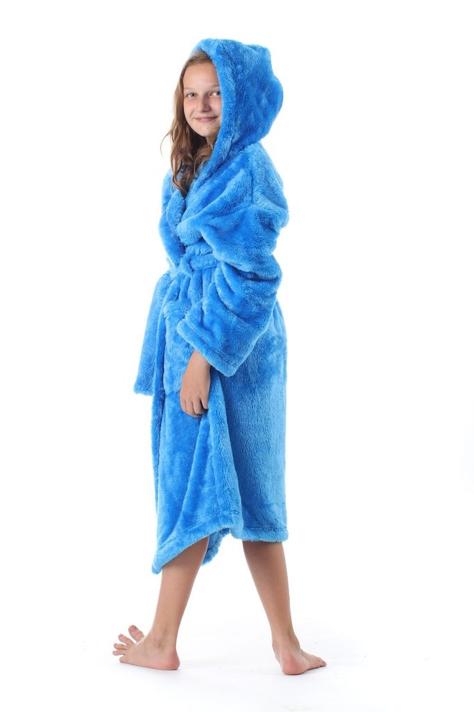 Oblíbený huňatý dětský župan z kolekce Lilly a Jack si vaše děti zamilují! Dlouhý župan v nebesky modré barvě a klasickém střihu s kapucí je z hřejivého materiálu wellsoft. Vaše děti se tak budou stále cítit v teple. Má praktické detaily jako je zavazování na pásek nebo dvě větší kapsy. Župan je lehký, nádherně nadýchaný, jemný na omak a zajišťuje příjemný maximální komfort. Pro příjemné zachumlání není nic lepšího!