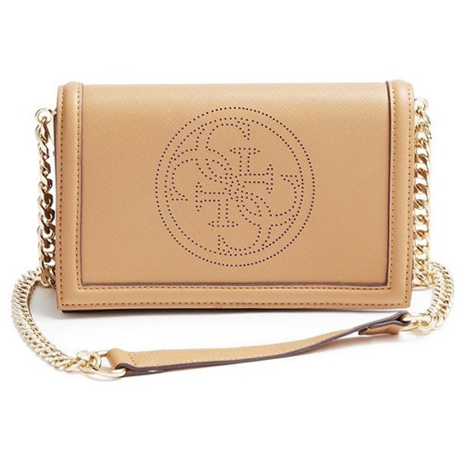 Elegantní crossbody kabelka GUESS Quattro G Perforated Cross-body Camel
