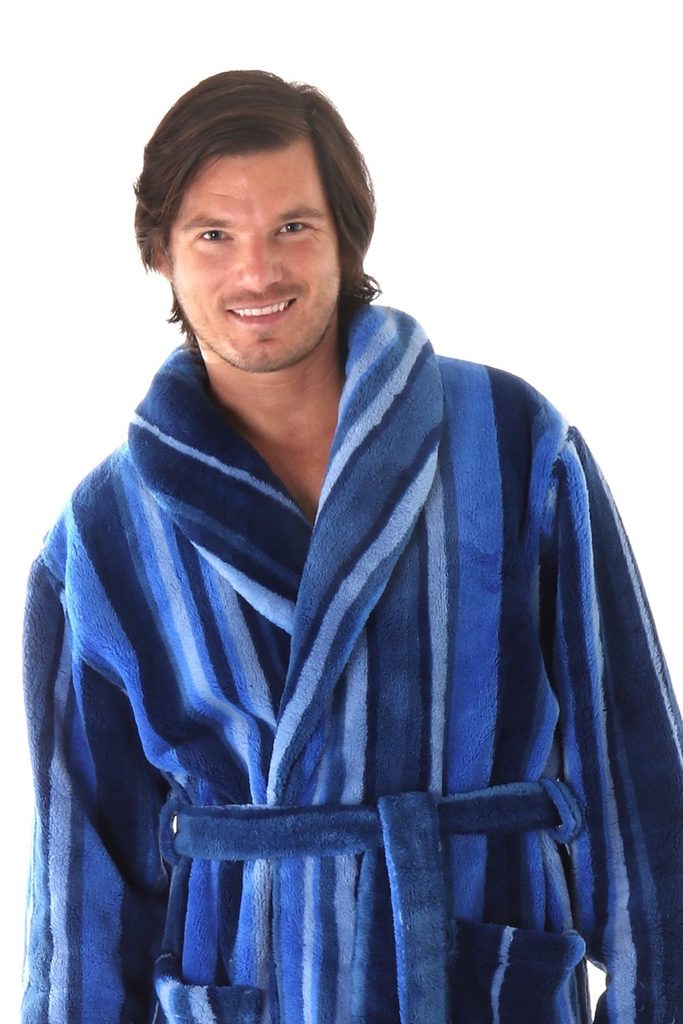 Župan ve svěží modré barvě s pruhy se hodí pro všechny věkové skupiny.