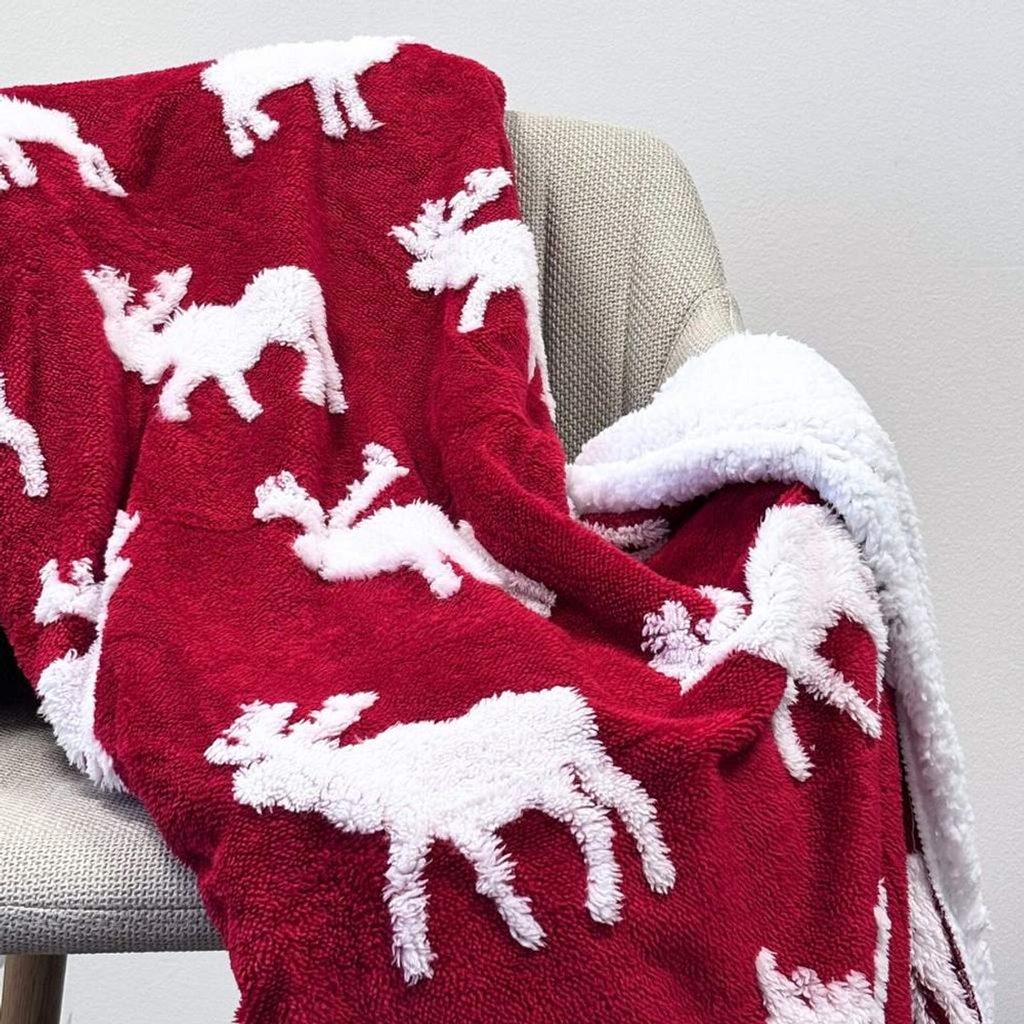 Teplá a hebká deka s beránkem se hodí jako doplněk do každé domácnosti a je nepostradatelná v chladnějším období. Zahřeje vás a přispěje k vaší pohodě. Deka má žakárový vzor bílých losů na červeném pozadí. Beránek je v bílé barvě.