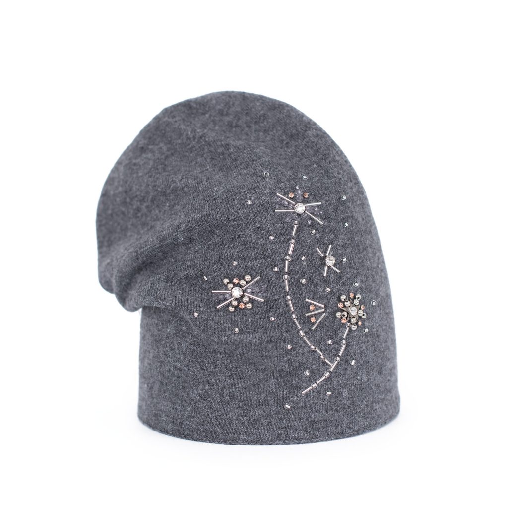 Výrobek dekorovaný korálky. Provedená z měkkého a příjemného materiálu. Zimní čepice v delším střihu. Hodí se zároveň k neformálním i elegantním stylizacím.