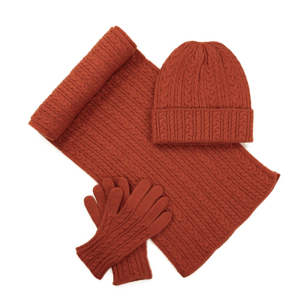 Čepice, šála a rukavice - rezavá