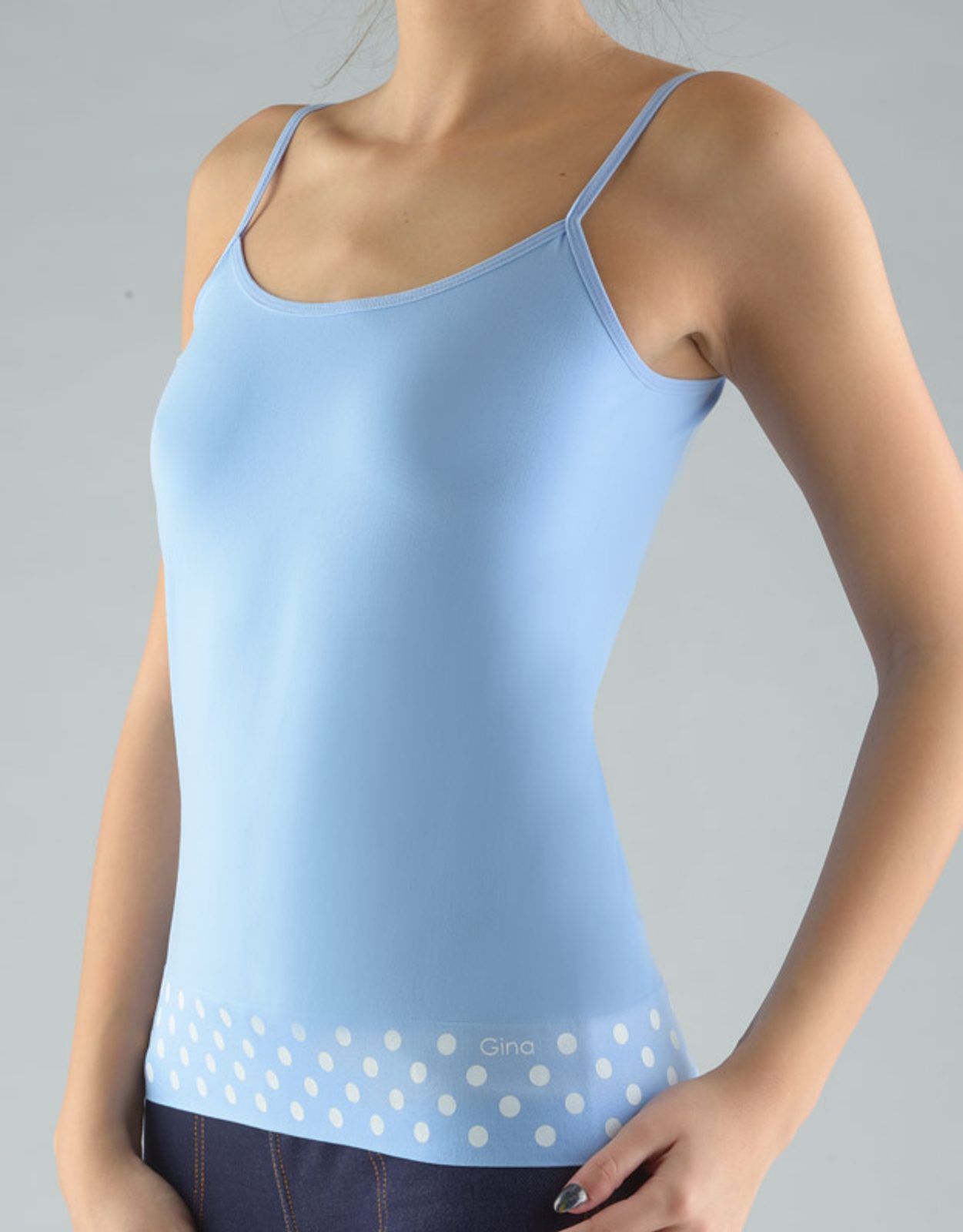 košilka, úzká ramínka, bezešvé, s potiskem značky GINA, kód 08991. Složení: 90% Polyamid 10% Elastan.