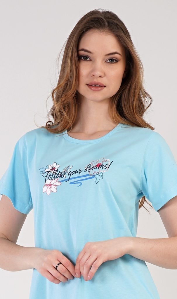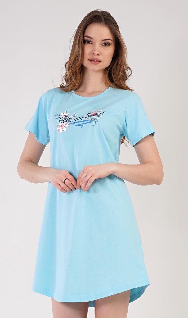 Dámská noční košile s krátkým rukávem Ella - světle tyrkysová