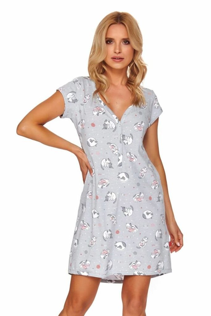 Dámská noční košilka Kim kočky šedá