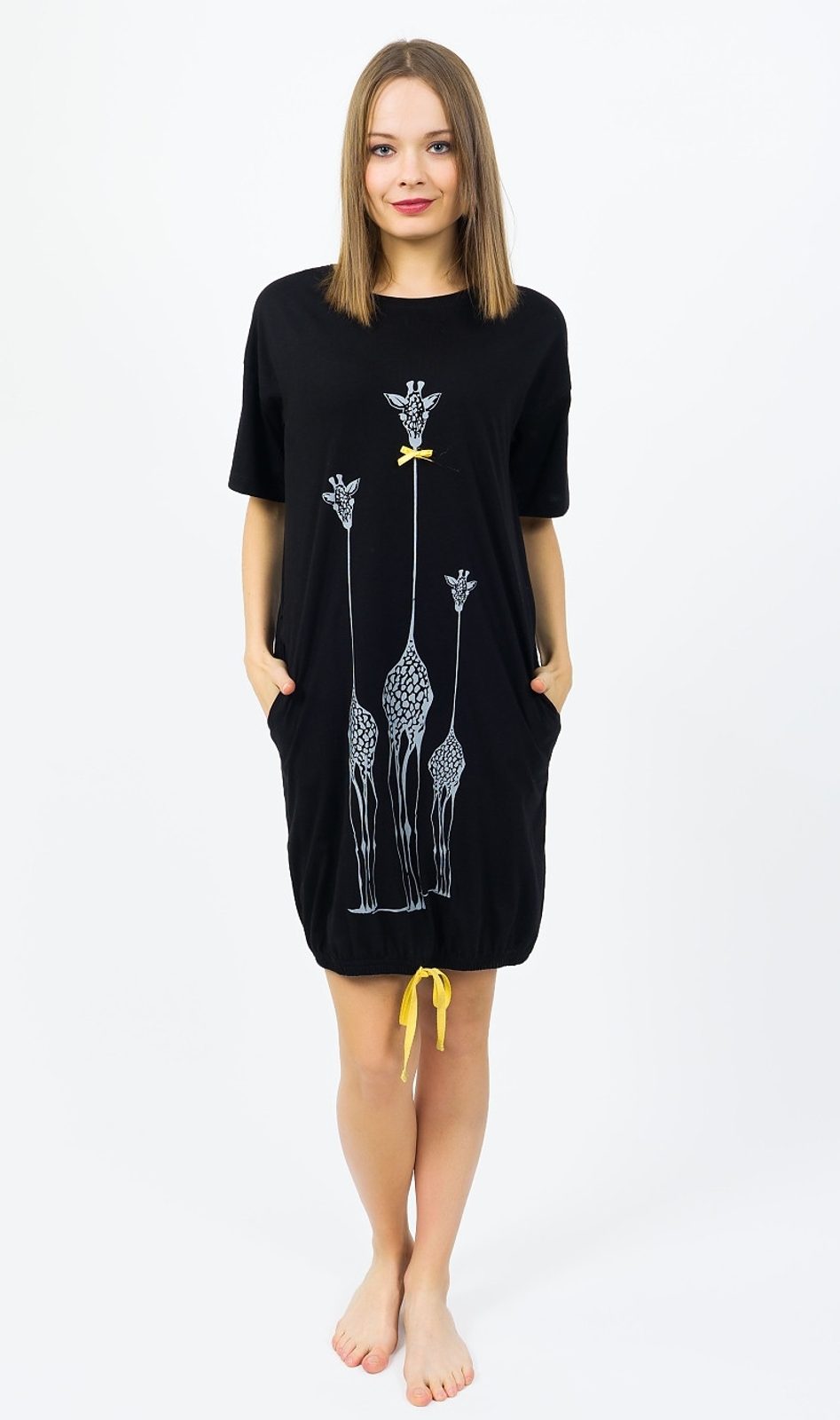Dámské domácí šaty s krátkým rukávem Žirafy - černá