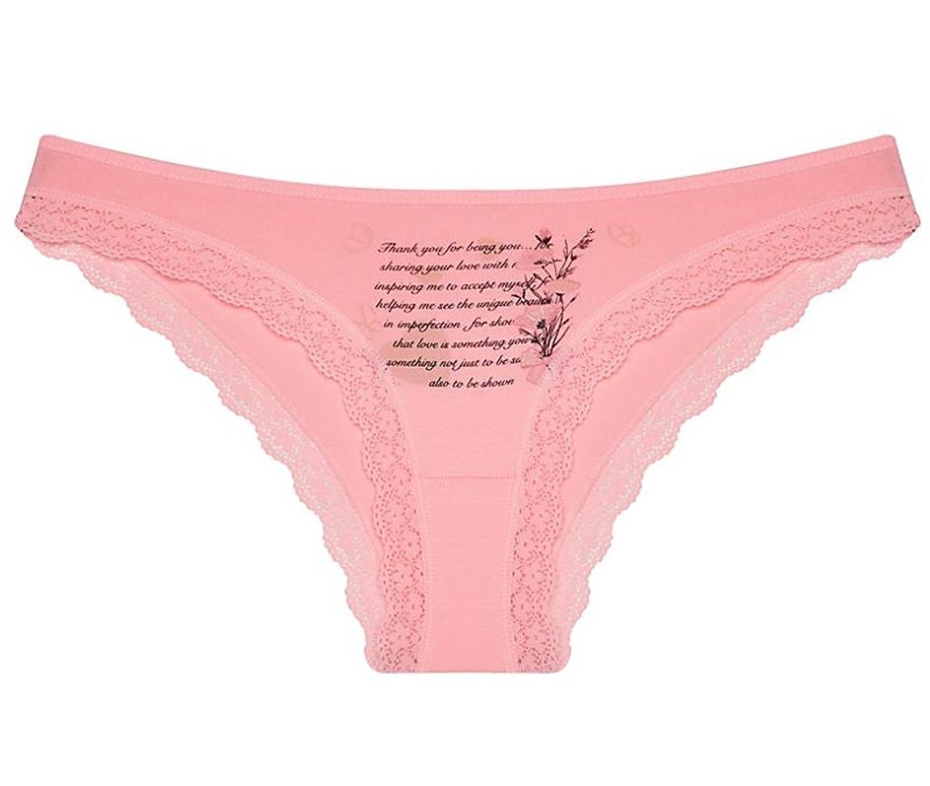 Dámské kalhotky Denisa. Dámské kalhotky klasického střihu jsou ozdobeny krajkou a drobným romantickým potiskem. Použitý materiál je příjemný a poddajný na dotek.