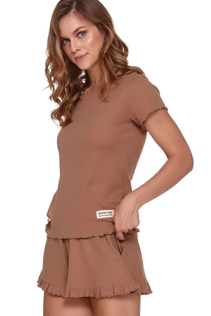 Dámské pyžamo 4315 Doctor Nap - vyrobené z velmi kvalitní a příjemné žebrované bavlny - hnědé tričko s krátkými rukávy - hnědé kraťasy s kapsami - lemování ozdobnými volánky - certifikát OEKO-TEX Standard 100