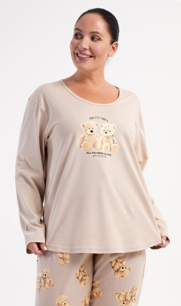 Dámské bavlněné pyžamo s dlouhým rukávem Méďové.| Filtr Barva | Béžová |