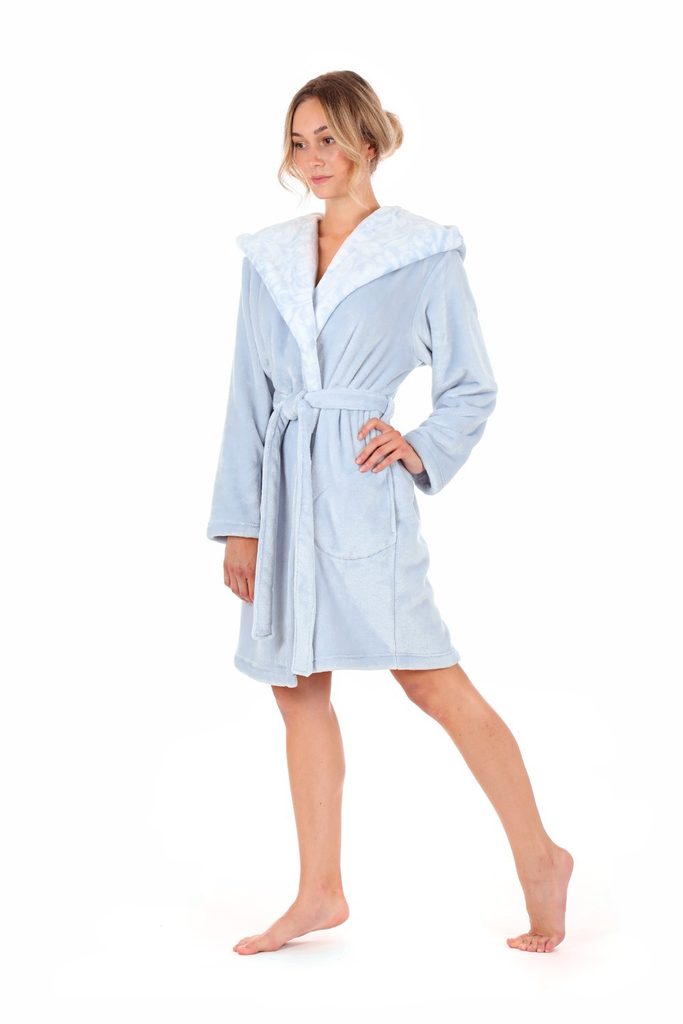 Dámský hřejivý župan s kapucí. Hedvábně jemný, hřejivý župan. Materiál flannel fleece.