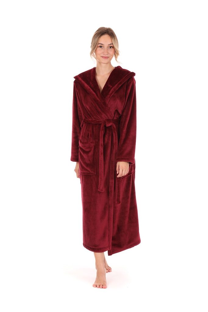 Tento dlouhý hřejivý župan s kapucí v barvě vínová je dalším z kvalitních produktů značky VESTIS. Župan je vyroben z materiálu flannel fleece, který je lehký, příjemný na dotek a zajišťuje tepelný komfort. Velký povrch vlákna umožňuje transport vlhkosti, což zvyšuje pohodlí nošení.