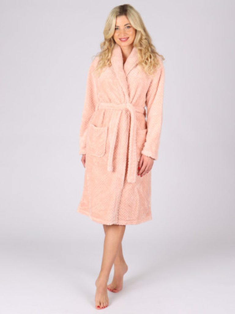 Krásný župan pro příjemné okamžiky po koupeli nebo prodloužená nedělní rána. Hřejivý dámský župan má strukturu "plástve, je hebký a příjemný na dotek. Budete se v něm cítit skvěle!