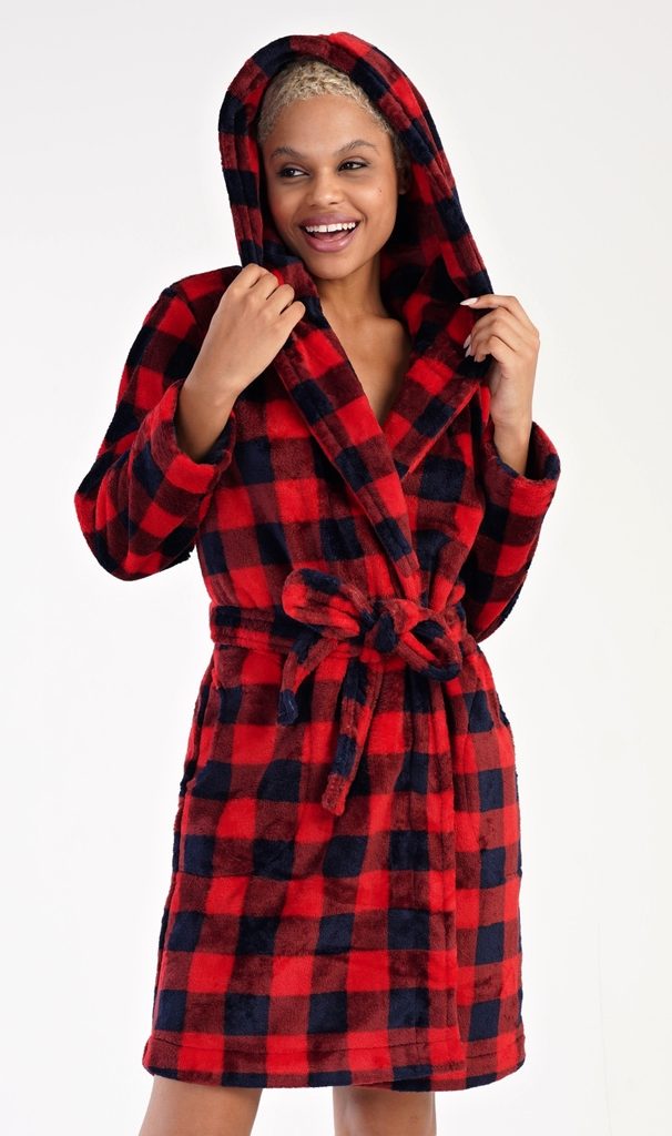 Dámský krátký župan s kapucí Kostka.| Filtr Barva | Červená |