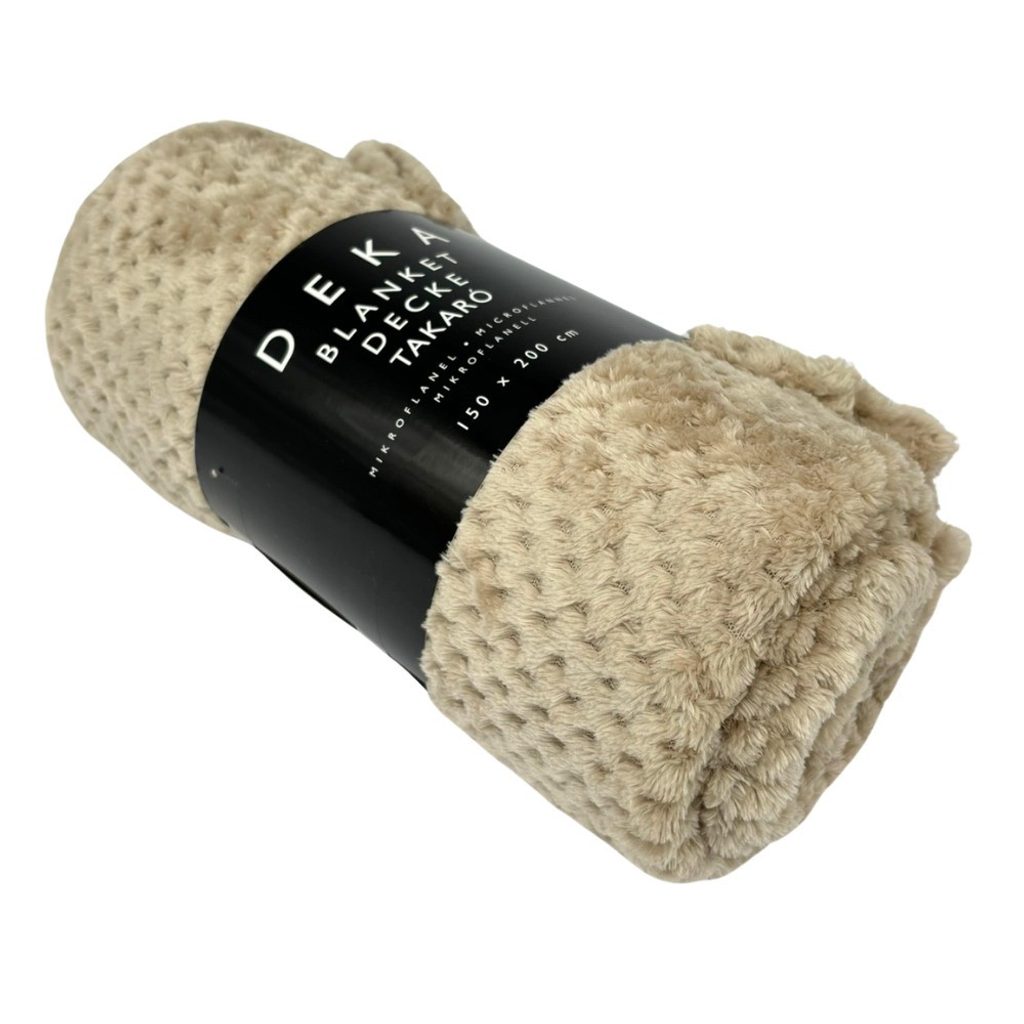 Mikroflanelová deka je užitečná v každé domácnosti. Může ležet stále na sedačce připravena poskytnout vám teplo a komfort. Deka je v béžové barvě, na povrchu s texturou, která vytváří nadýchaný dojem a jedinečný vzhled. V naší nabídce najdete deky v mnoha různých barvách, takže si můžete vybrat tu, která nejlépe odpovídá vašemu vkusu a interiéru.