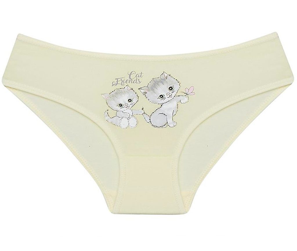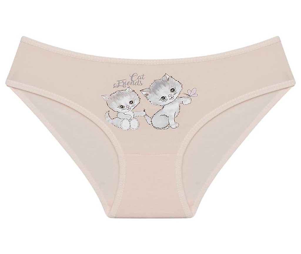 Dětské bavlněné kalhotky Cat friends. Dětské kalhotky klasického střihu s obrázkem koťátek a nápisem 'Cat friends'. Použitý materiál je jemný a poddajný na dotek.