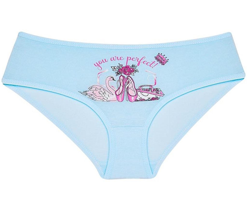 Dětské bavlněné kalhotky Denisa. Dětské kalhotky klasického střihu s obrázkem a nápisem 'You are perfect!'. Použitý materiál je jemný a poddajný na dotek.