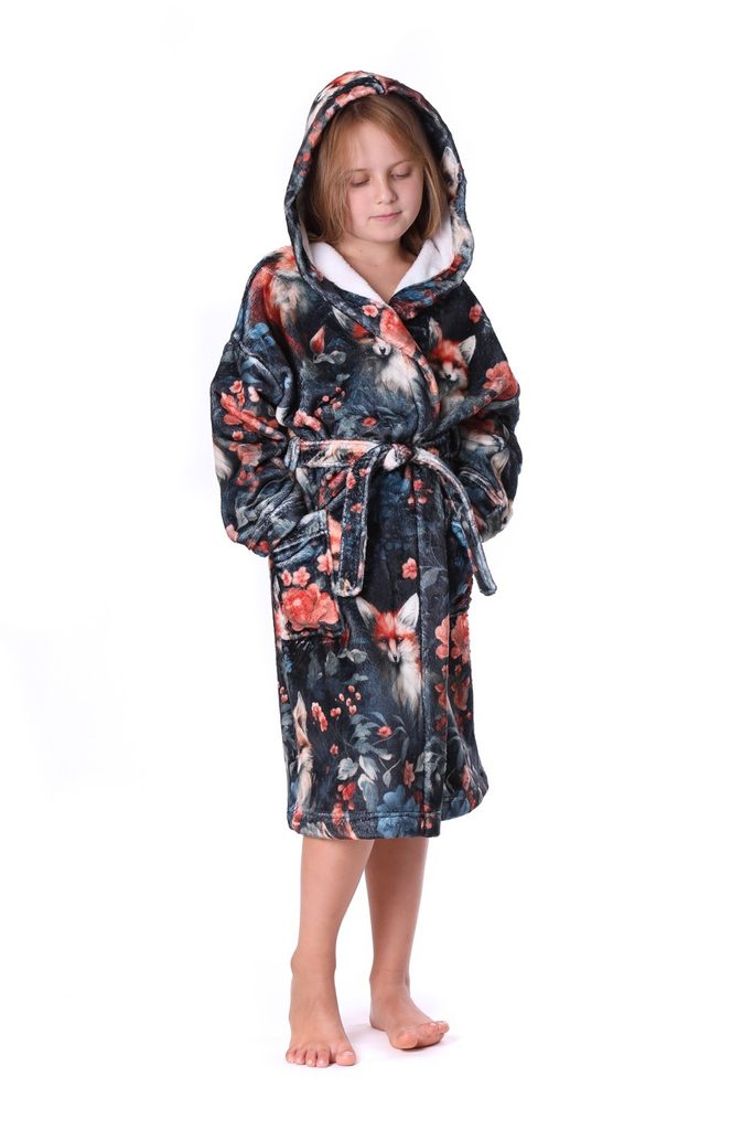 Župan Zora je vyroben z materiálu flannel fleece, který vyniká jemným hebkým povrchem, hustým kratším vlasem, díky kterému je materiál příjemně hřejivý a zároveň lehký a méně objemný. Velmi snadno se pere a rychle schne. Perte v pračce na 40stupňů a sušte v sušičce na nízký teplotní stupeň. Župany neztrácí svůj tvar ani barvu. Tento měkký a hřejivý župan ochrání vaše malé ratolesti před chladem, zatímco je liška provede svým tajemným světem.