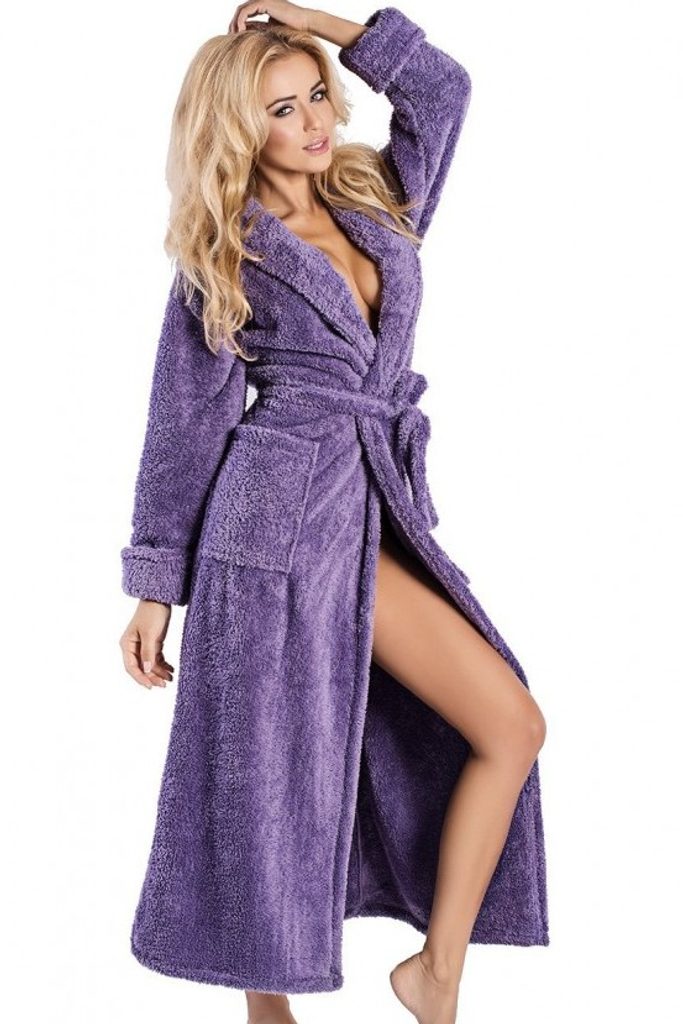 Dlouhý dámský župan Eliza fialový se šálovým límcem