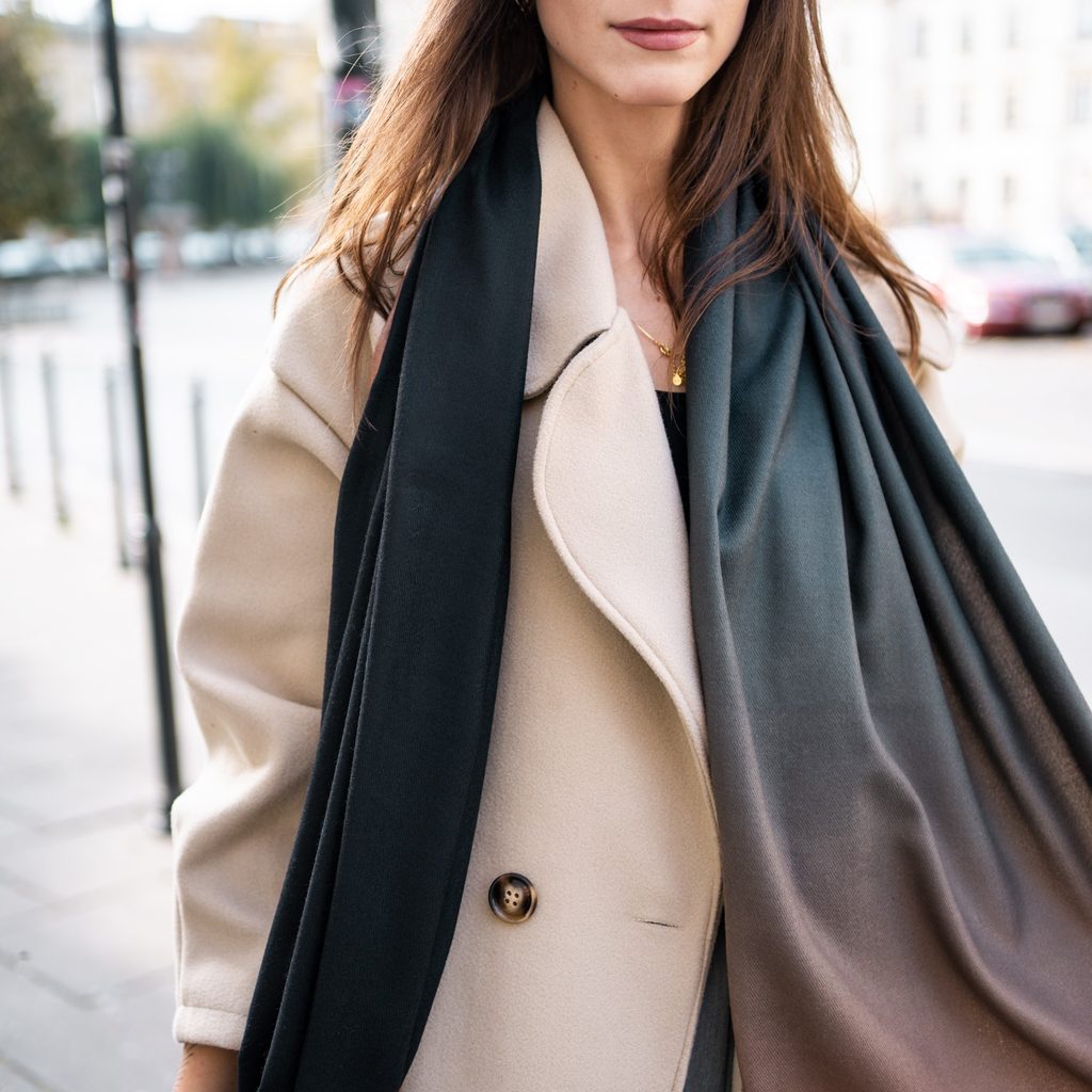Elegantní šála v klasickém střihu. Provedená z měkkého a příjemného materiálu. Velmi působivá. Tónovaná a minimalistická, skvěle doplní klasické stylizace.