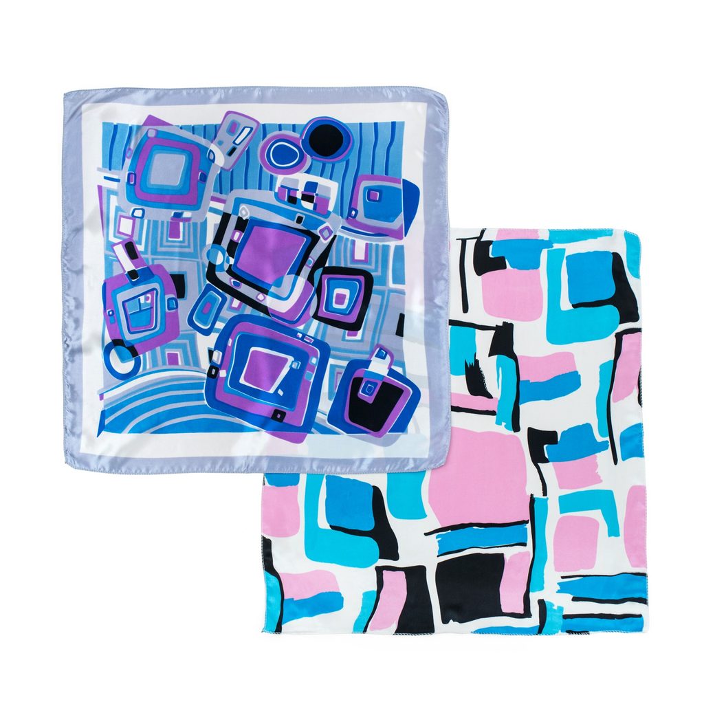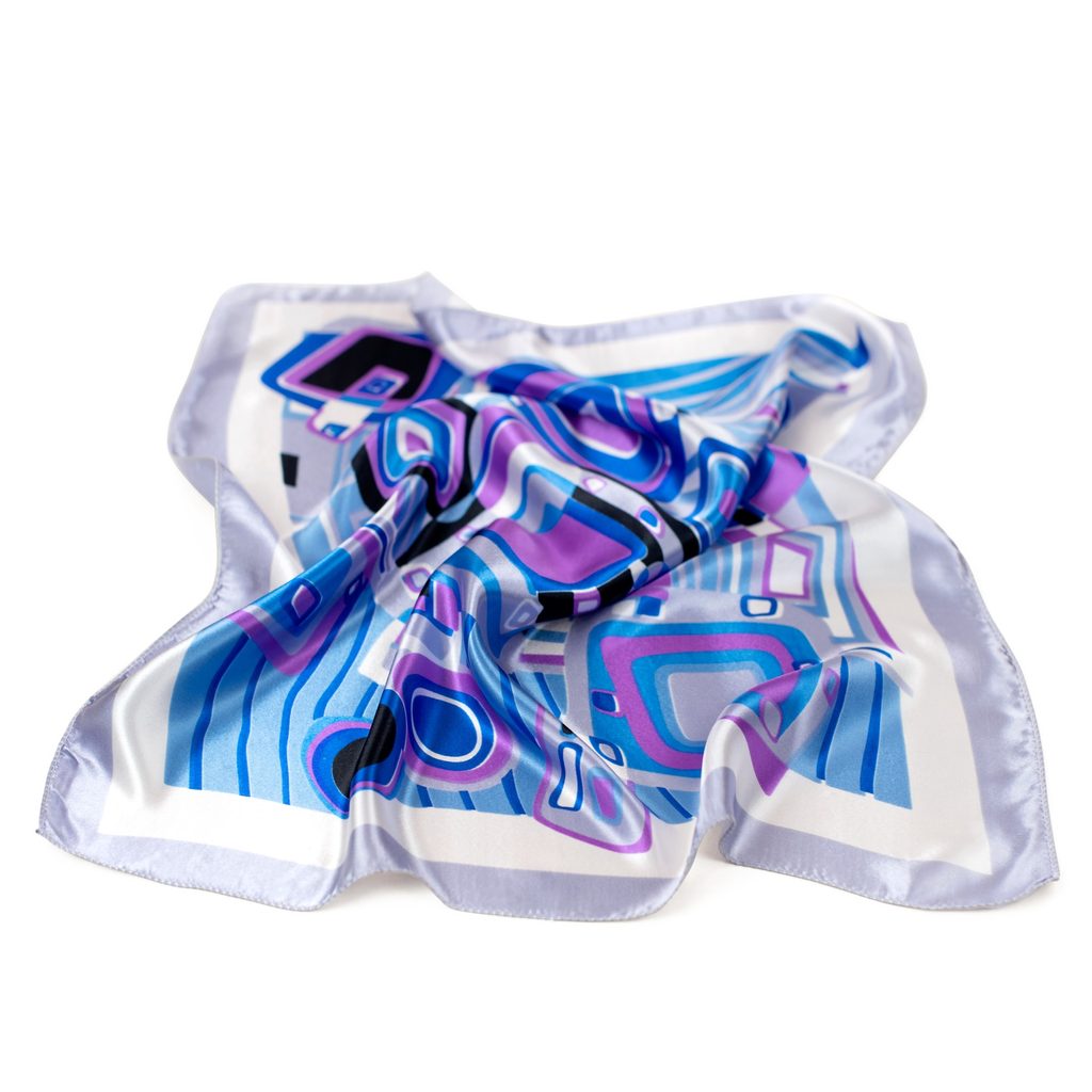 Klasický šátek s elegantními motivy. Zdobená abstraktním motivem. Skvěle se osvědčí zároveň v dámských, jak i pánských stylizacích, a dokonce i dětských. Multifunkční doplněk: k zavázání kolem krku, na hlavě, kolem zápěstí, a dokonce i na kabelce.