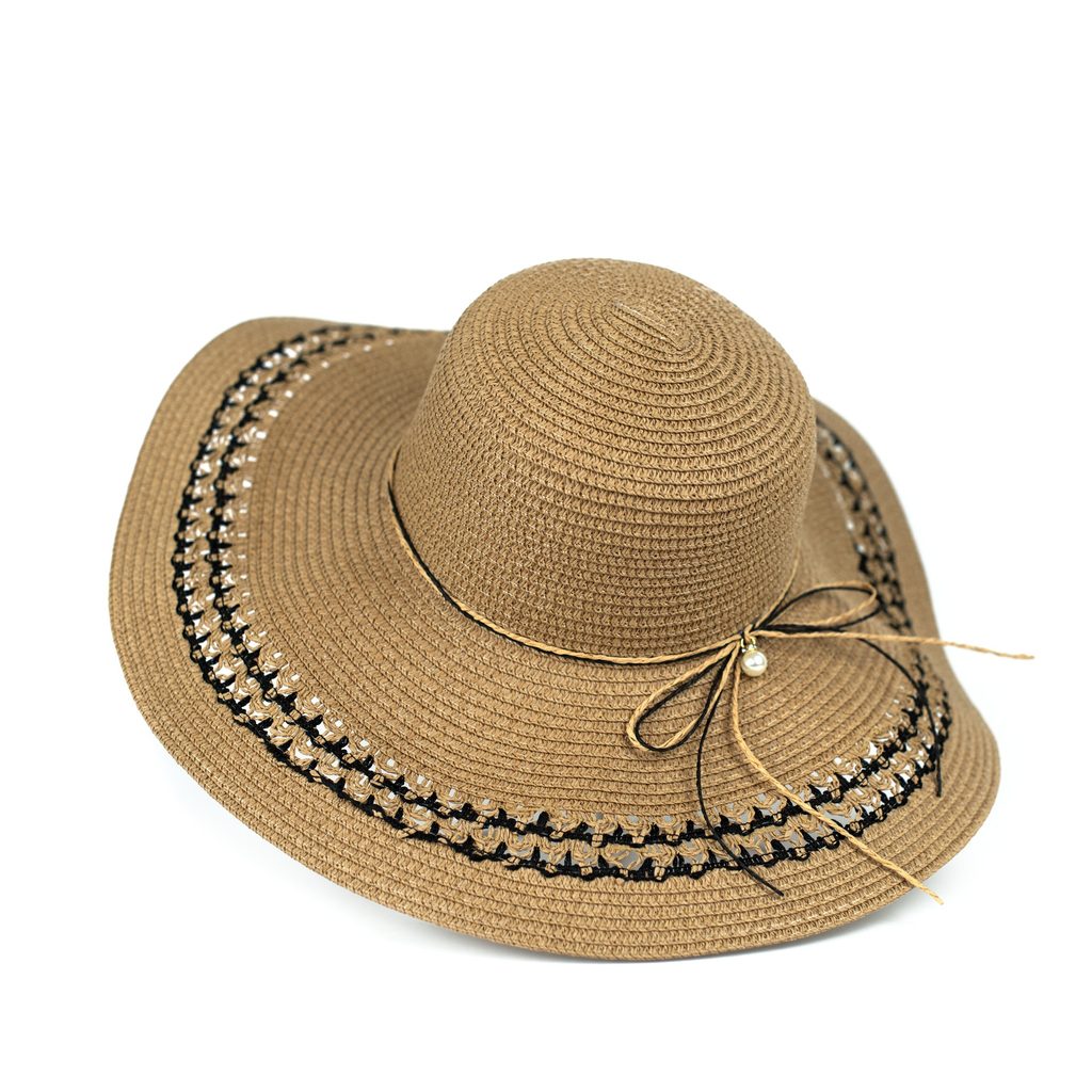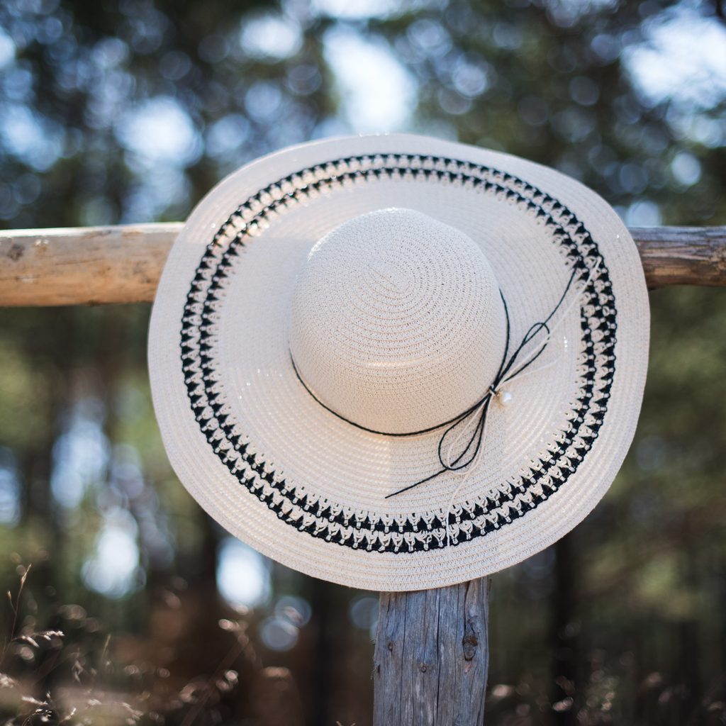 Klobouk se zdobeným lemem Světlý klobouk s jemnou černobílou mašlí