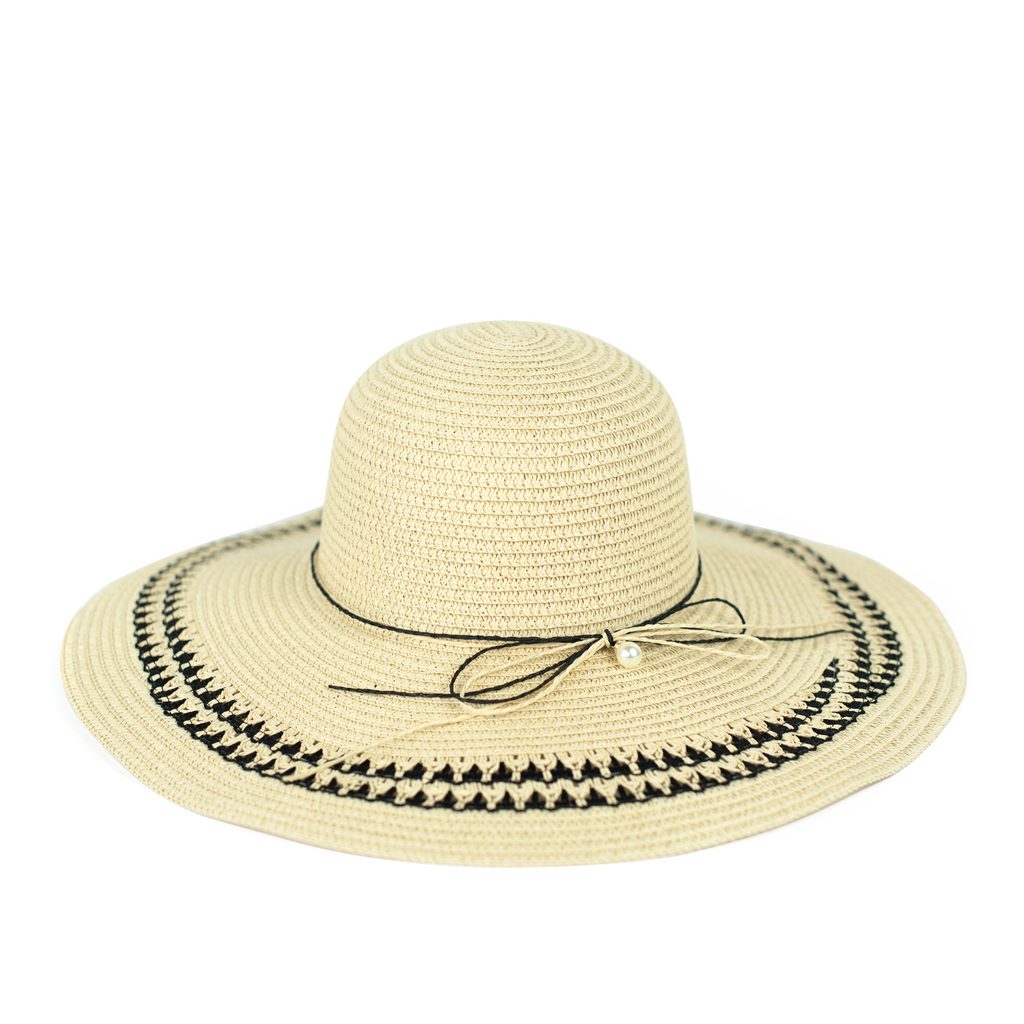 Lehký klobouk se širokým lemem Světlý klobouk s jemnou černobílou mašlí