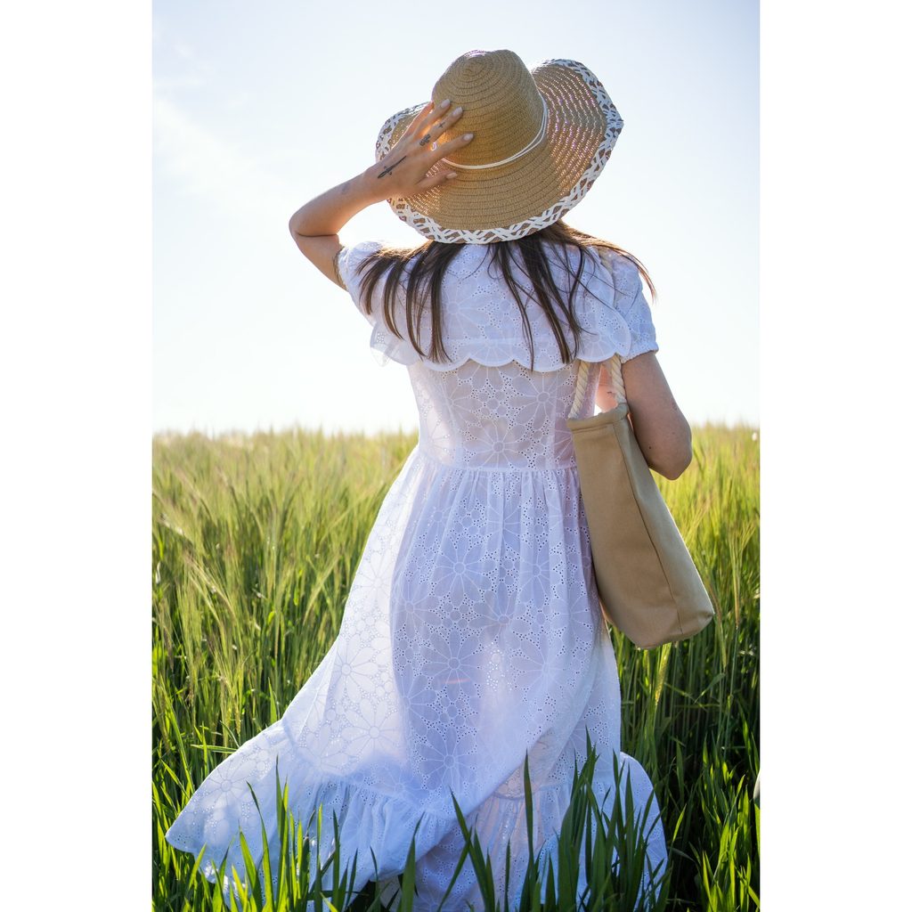 Letní klobouk se zdobeným lemem. Velmi lehký, hezky se prezentuje na hlavě. Velmi slušivý. Hodí se zároveň v rozpáleném městě i na pláži. Elegantní a stylový, ideální k nadčasovým letním stylizacím.