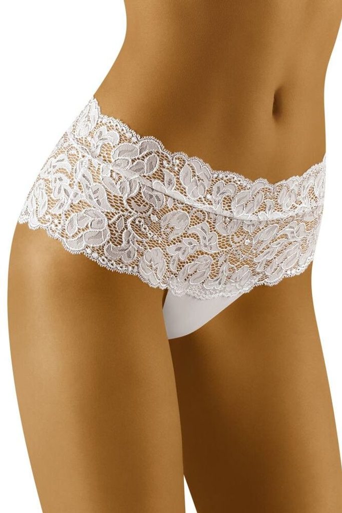 Bílé dámské kalhotky Nova jsou vyrobené z jemné krajky a zezadu decentně vykrojené. Bílé dámské kalhotky Nova jsou vyrobené z jemné krajky a zezadu decentně vykrojené. Materiál: 83% polyamid, 17% elastan