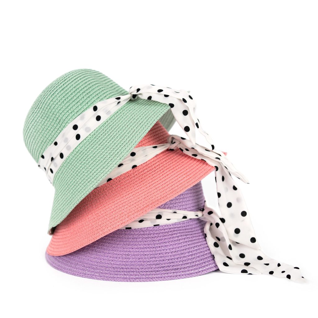 Lehký klobouk s mašlí Klobouk se slaměnými bambulemi