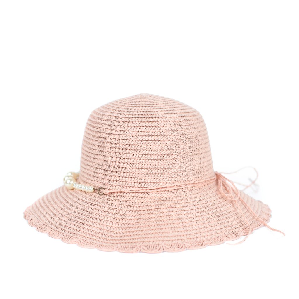 Klobouk s růžovou mašlí Klobouk se zdobeným lemem