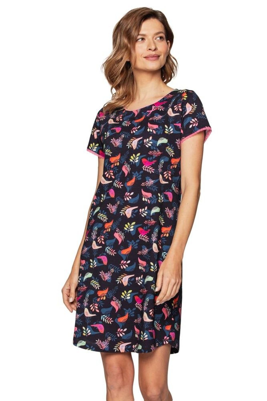 Dámská košilka Sára má půvabný barevný vzor s ptáky a velice příjemný materiál. Dámská košilka Sára má půvabný barevný vzor s ptáky a velice příjemný materiál. Materiál: 100% bavlna