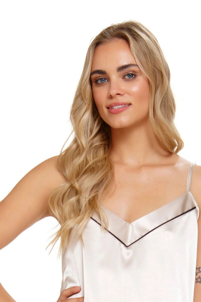 Dámská saténová košilka DKAREN Liwia krémová Dámská saténová košilka DKAREN Liwia krémová
