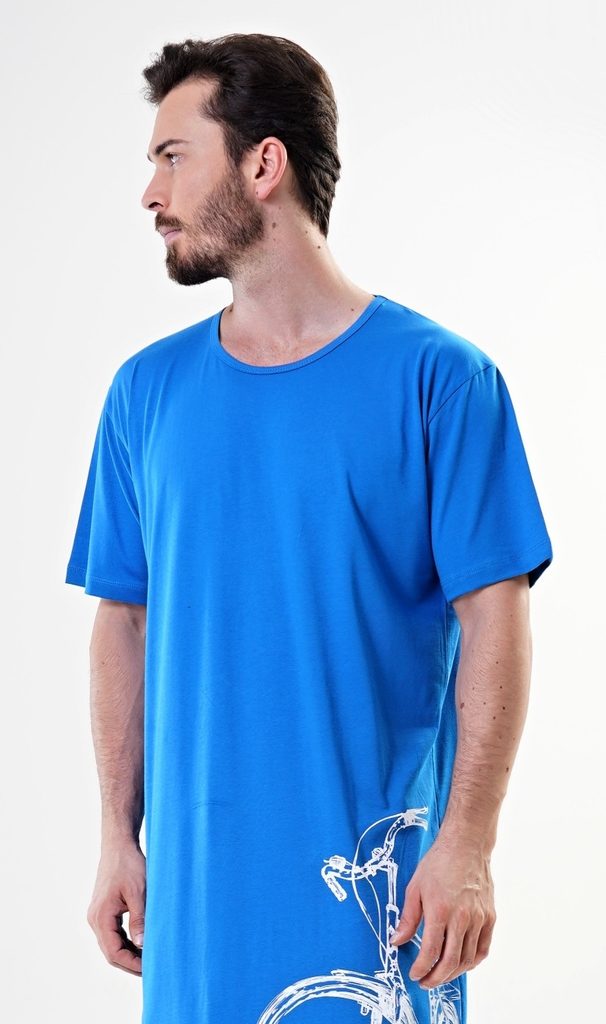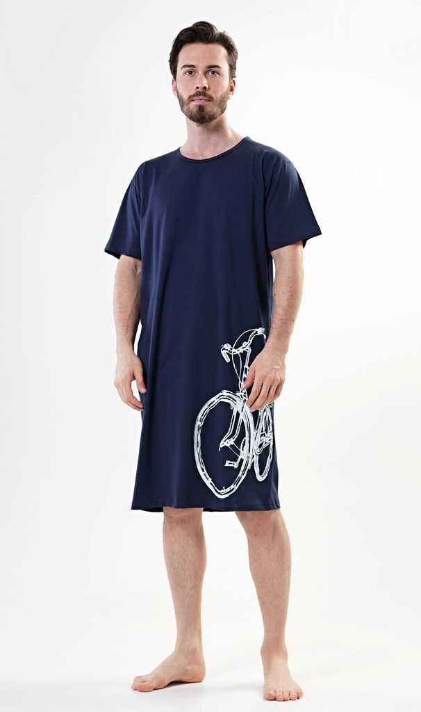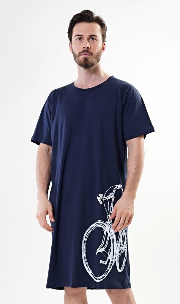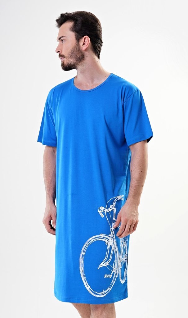 Pánská noční košile s krátkým rukávem Velké kolo. Pánská noční košile pro všechny milovníky pohodlí s potiskem velkého kola na spodním lemu. Použitý materiál je jemný a poddajný na dotek.