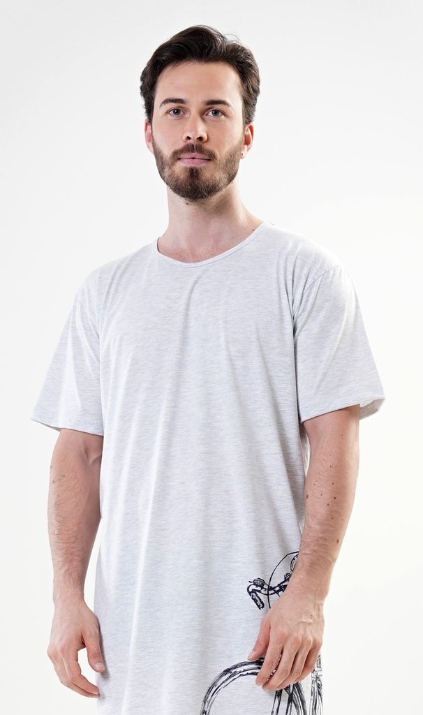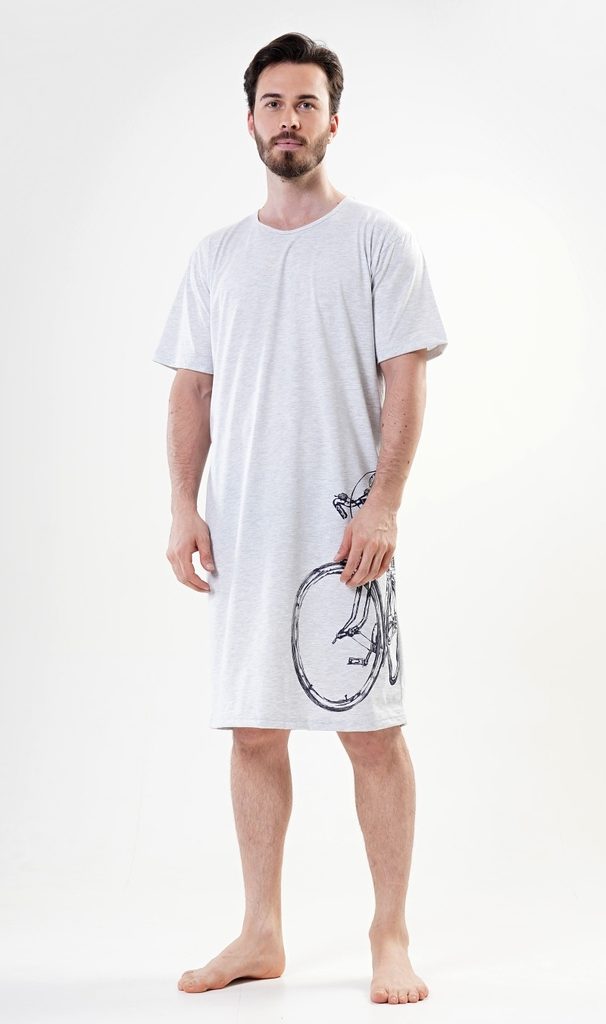 Pánská bavlněná noční košile s krátkým rukávem Velké kolo.| Filtr Barva | Šedá |