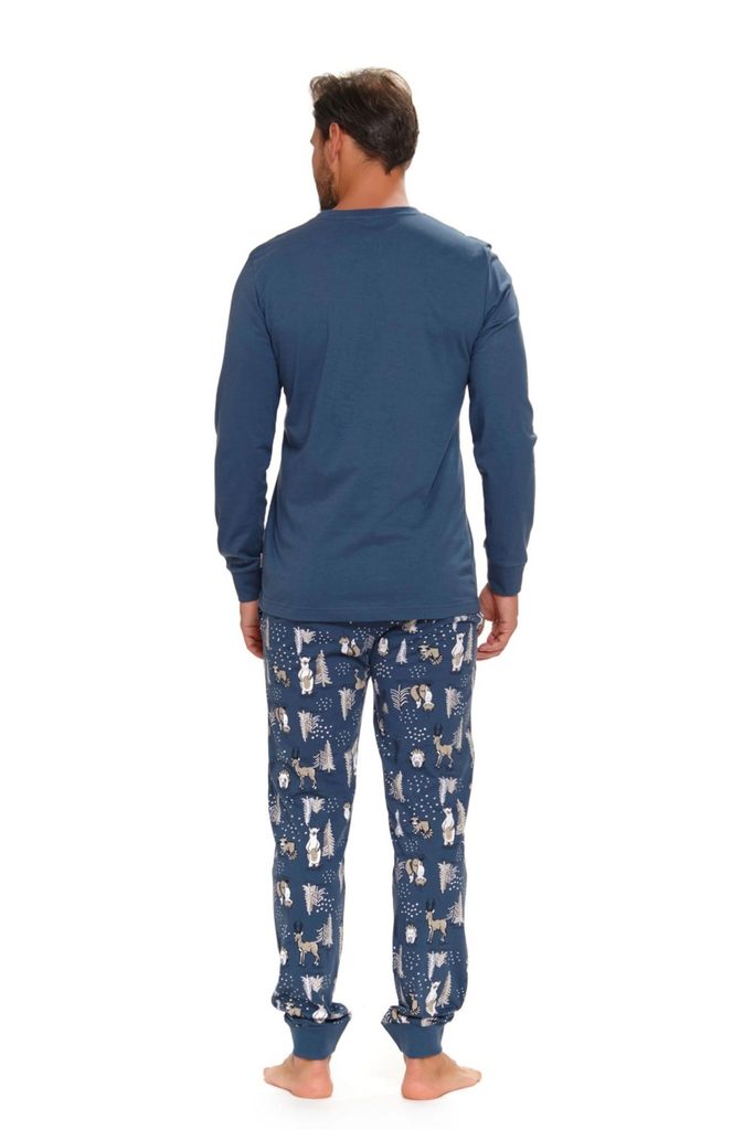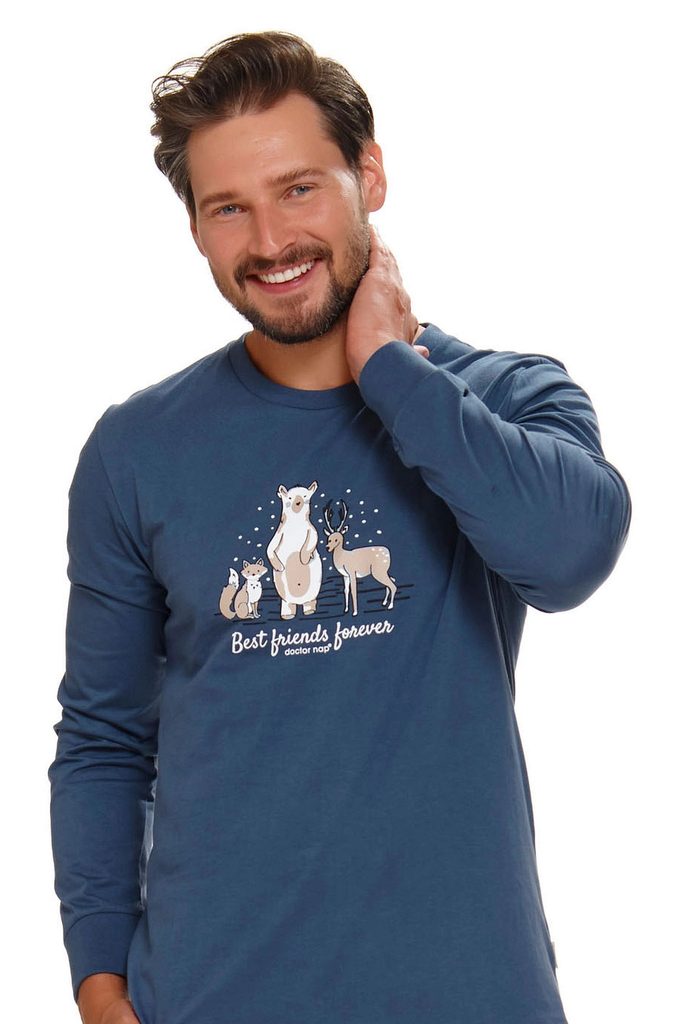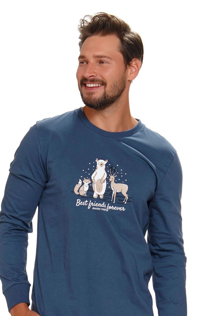 Pánské pyžamo 4329 Doctor Nap - vyrobené z velmi kvalitní a příjemné bavlny - modré tričko s dlouhými rukávy - na přední straně ozdobené potiskem - dlouhé vzorované kalhoty