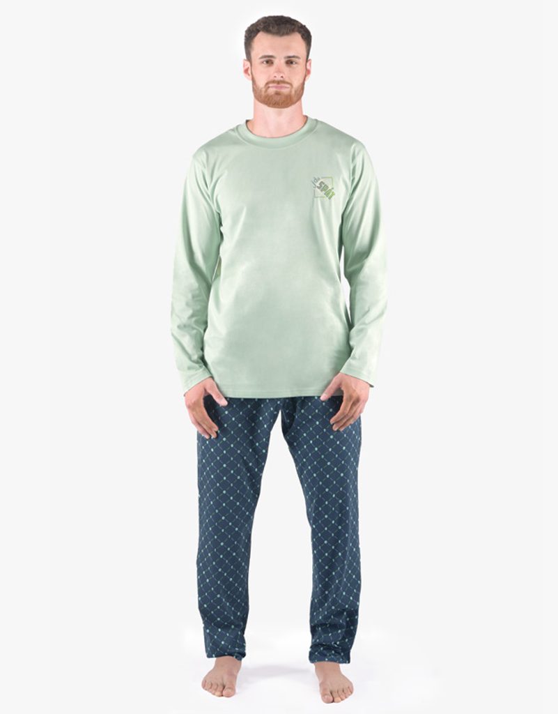 Pyžamo dlouhé pánské, šité, s potiskem, kód 79171. Složení: 100% Bavlna