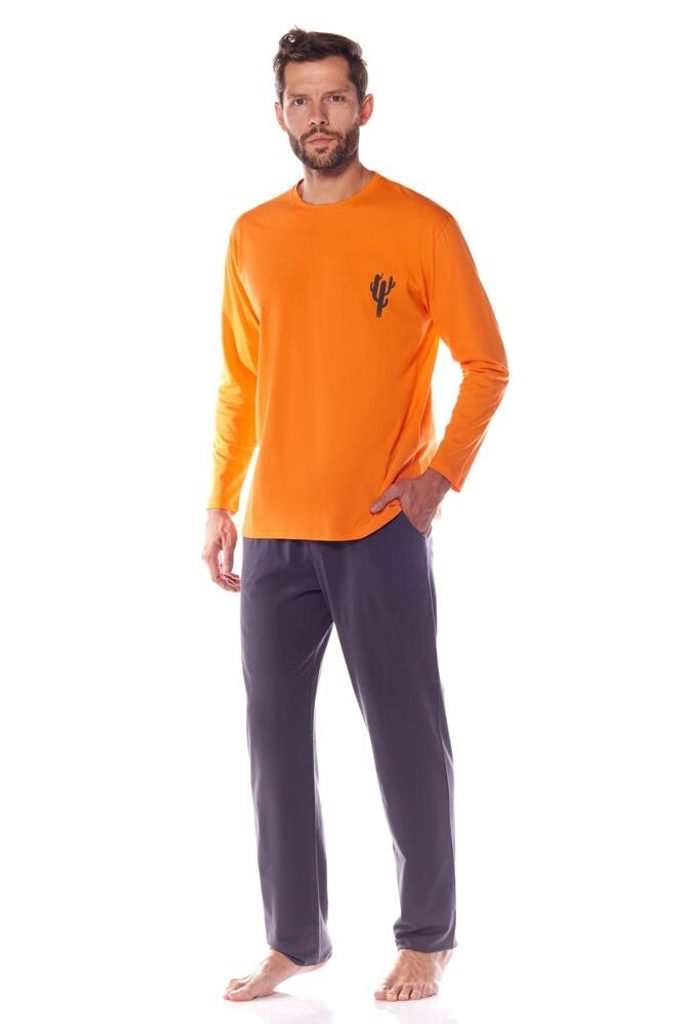 Pánské pyžamo Kamil má jasně oranžovou barvu na triku, je se vzorem kaktusu a je vyrobené z kvalitní bavlny. Pánské pyžamo Kamil má jasně oranžovou barvu na triku, je se vzorem kaktusu a je vyrobené z kvalitní bavlny. Materiál: 100% bavlna