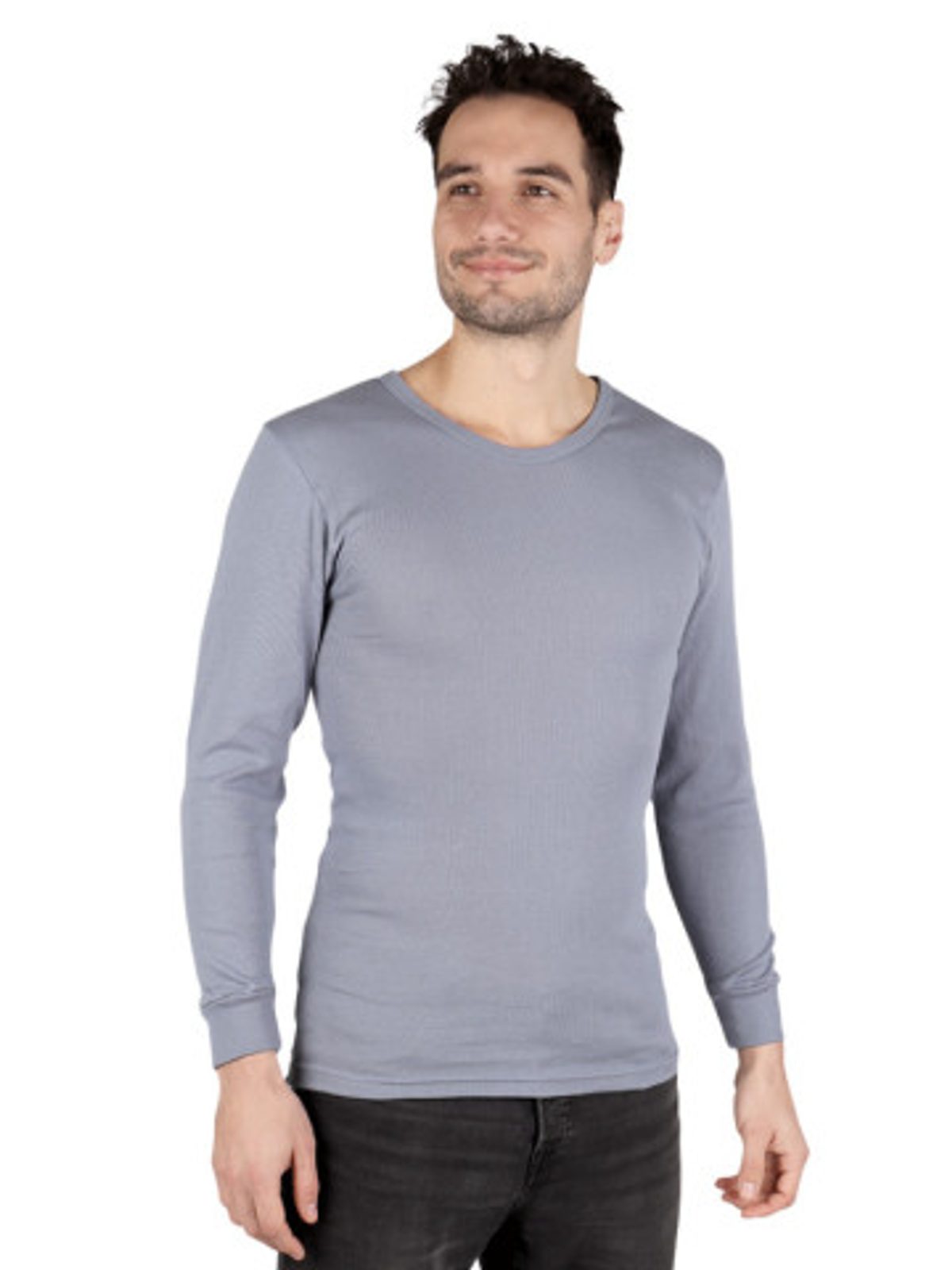 Nadměrné šedé pánské bavlněné triko s dlouhým rukávem. Triko můžete nosit pod košile, na sport nebo jako samostatnou vrchní vrstvu oblečení.
