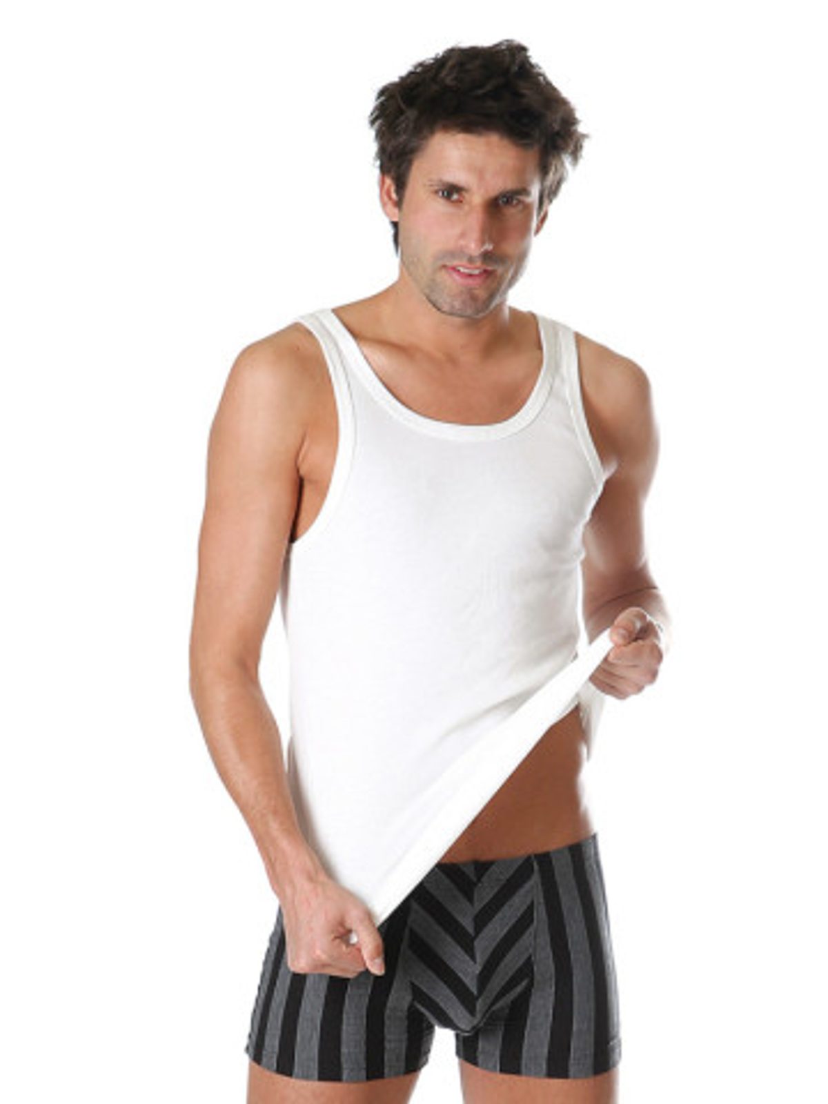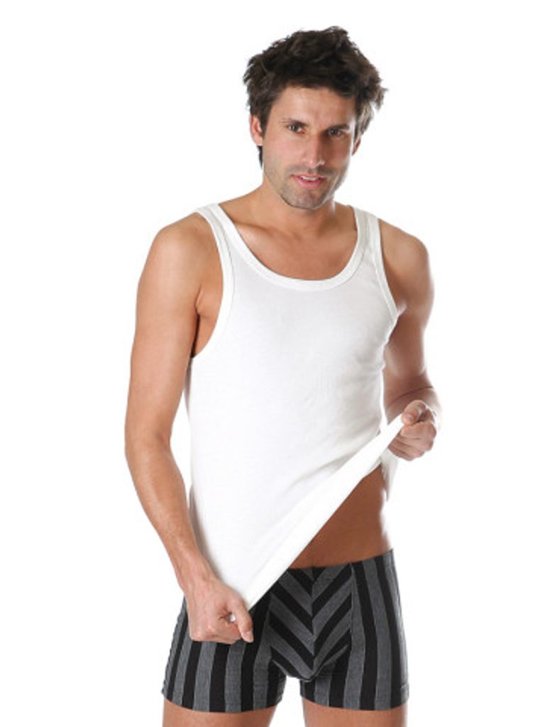 Klasický bílý pánský bavlněný nátělník bez rukávů, komfortní při celodenním nošení. Můžete ho nosit pod košile, trika nebo jako samostatnou vrchní vrstvu oblečení.