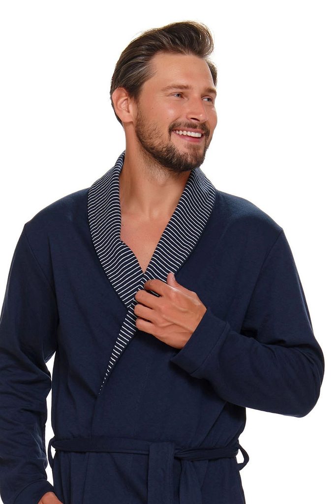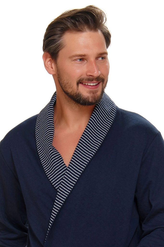 Pánský župan 5283 plus Doctornap - tmavě modrá barva - vyrobený z velmi kvalitního a příjemného materiálu - s šálovým límcem - s kapsami - vázání v pase - certifikát OEKO-TEX Standart 100