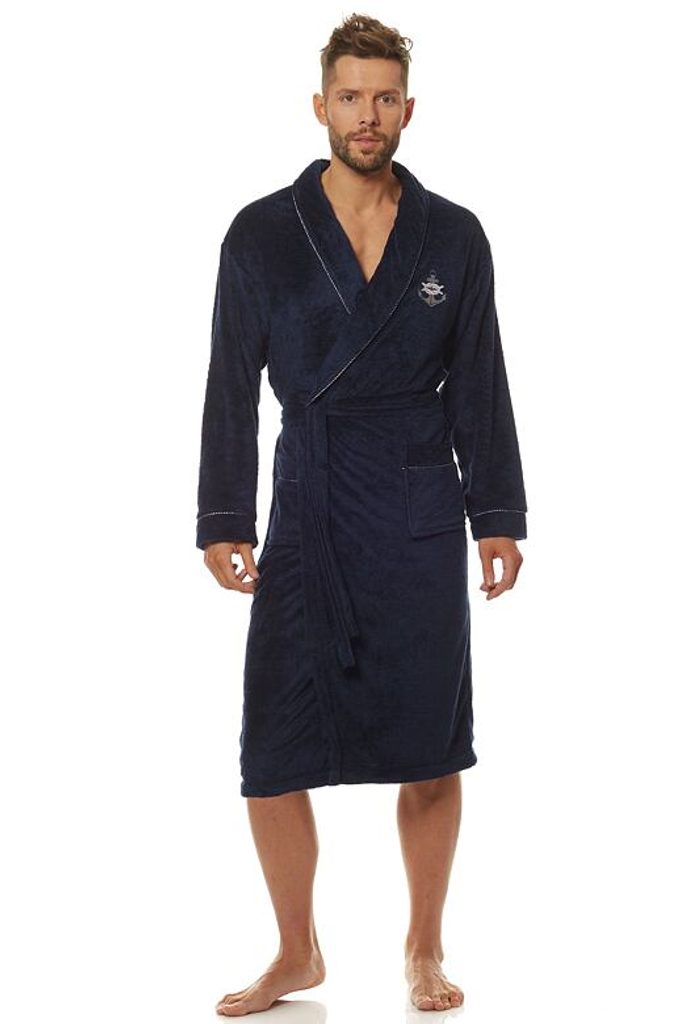 Pánský župan s výšivkou kotvy a ozdobnými lemy vám bude slušet.