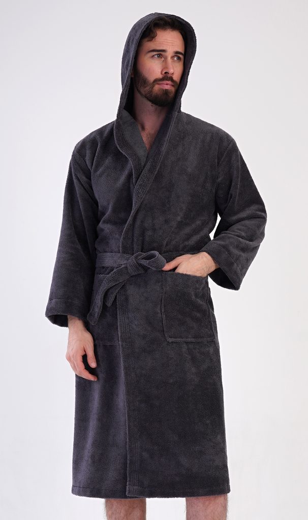 Pánský bavlněný froté župan s kapucí Alex. Pánský dlouhý župan s kapucí a páskem ke stažení je vhodný po koupeli i na povalování se doma na gauči. Froté župan má praktické kapsy, které oceníte při návštěvě wellness. Použitý bavlněný materiál je příjemný a poddajný na dotek.