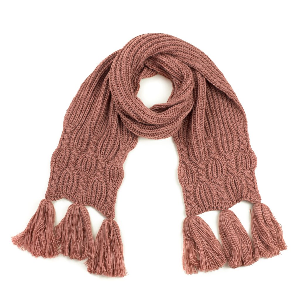 Dámský hnědý šál s proužky Šál s růžovým zimním vzorem
