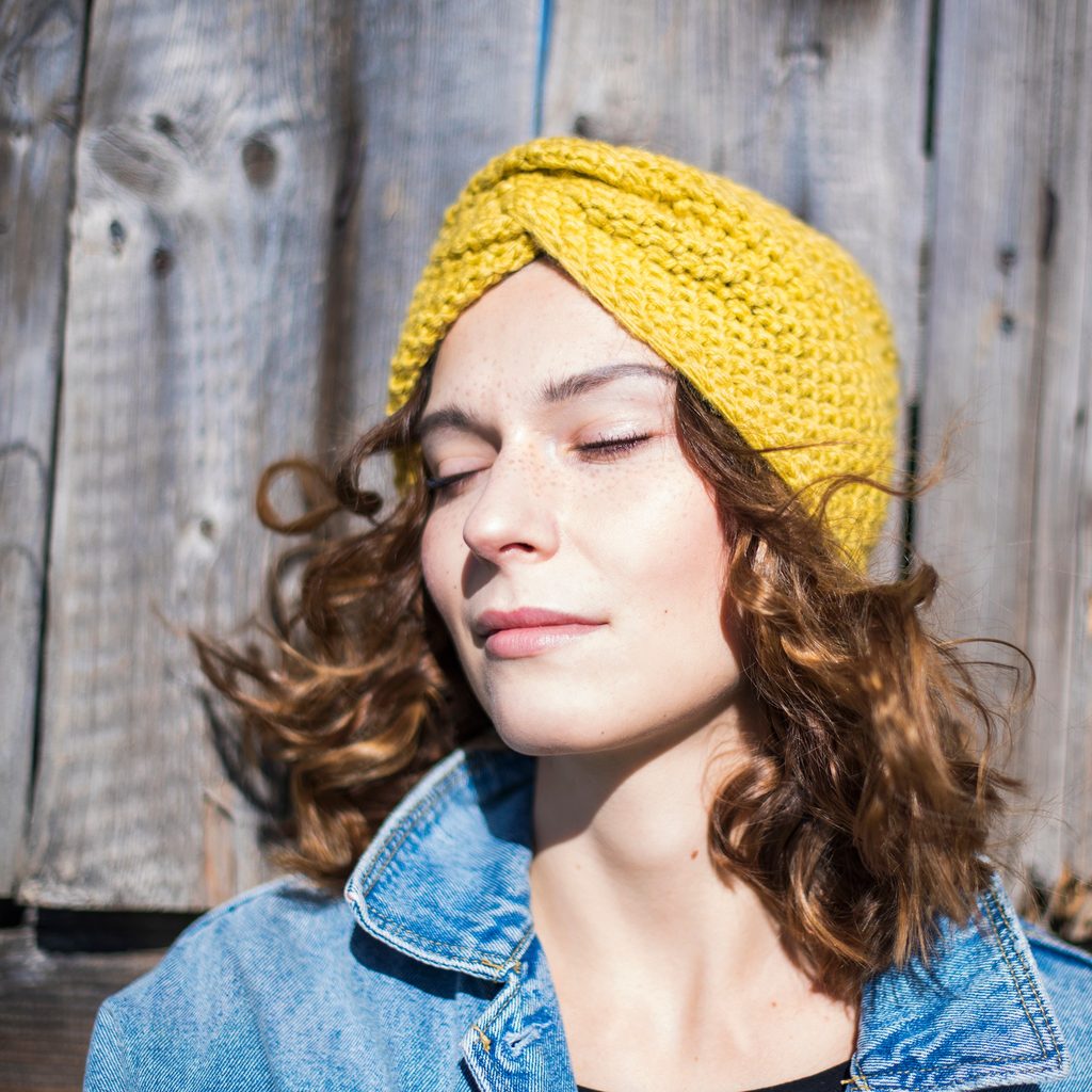 Podzimní pletená čelenka žlutá Čelenka