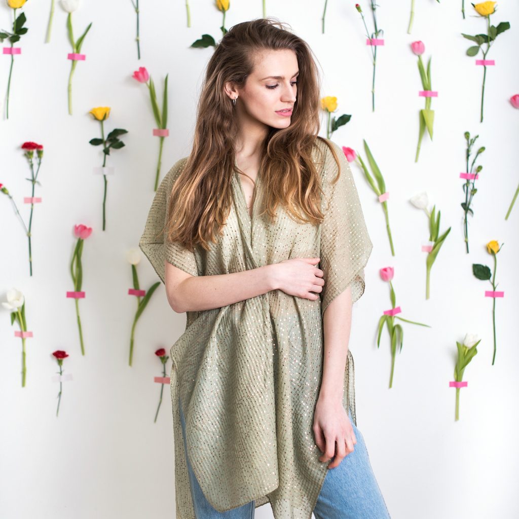 Romantické a lehké pareo na teplé dny. Sešité pod rameny, díky čemuž se nebude sesouvat. Velmi praktické: zakrývá záda a ramena, díky čemuž chrání před sluncem. Hodí se zároveň o dovolené i každý den.