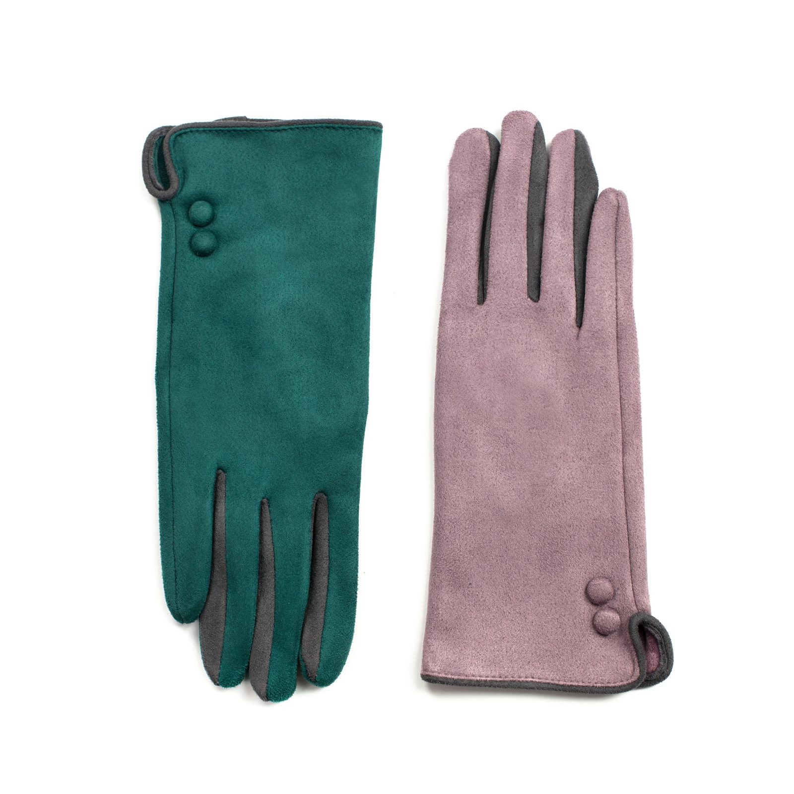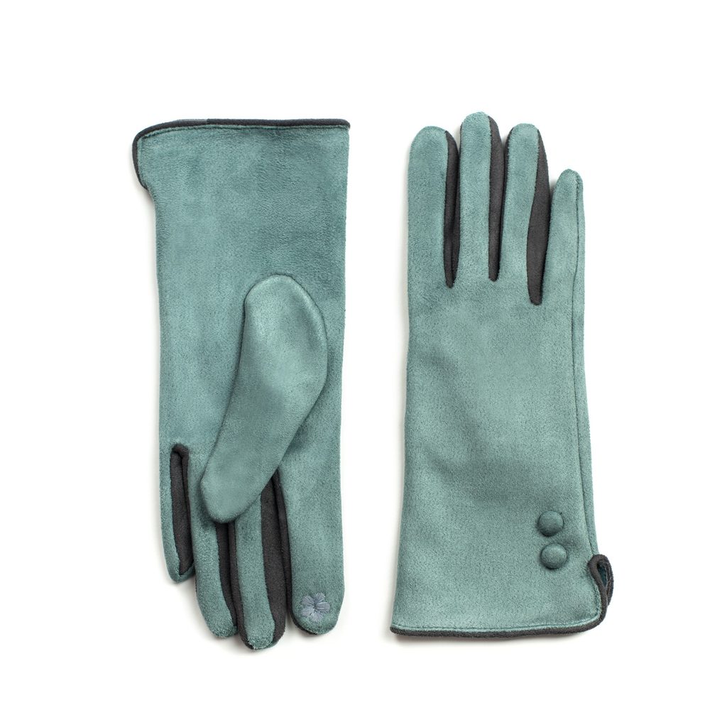 Odepínací šedé rukavice Módní rukavice zdobené knoflíčky zelené
