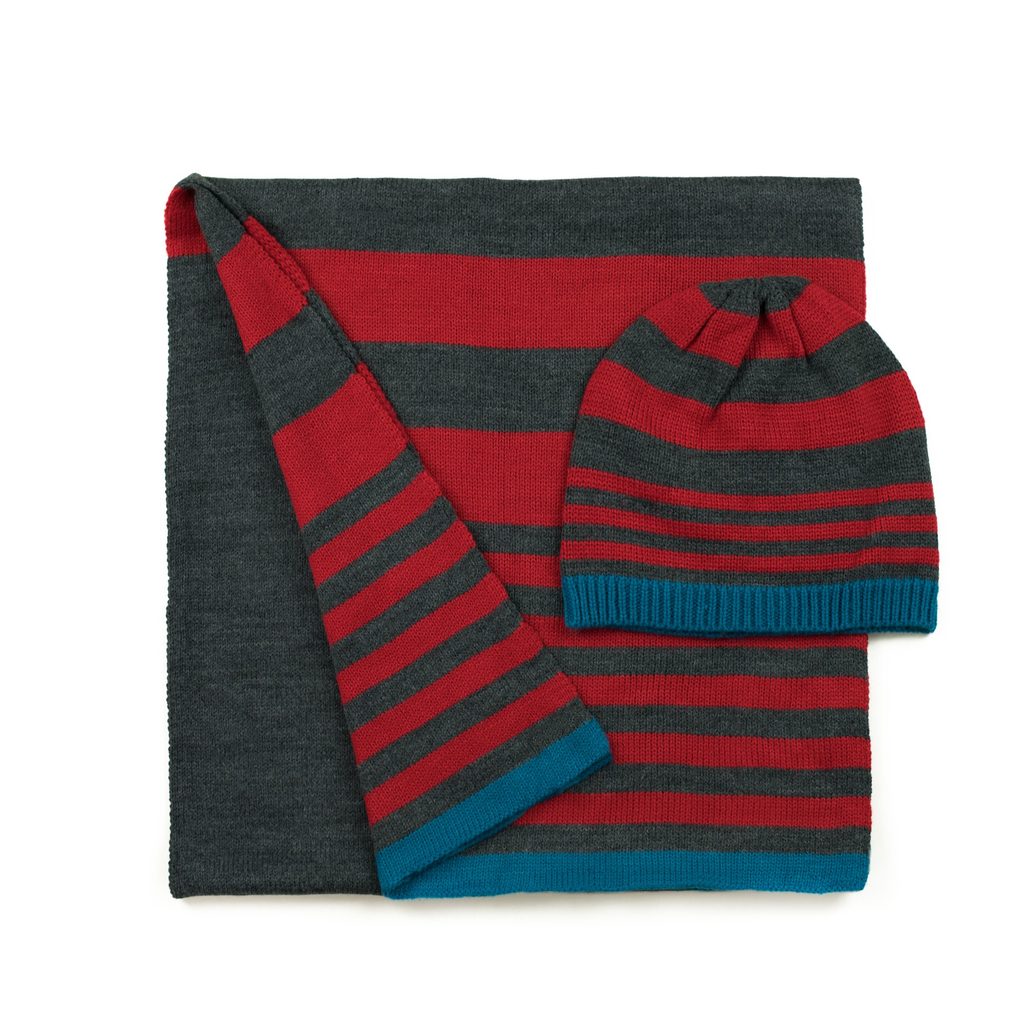 Čepice, šála a rukavice - modrozelená Sada červená